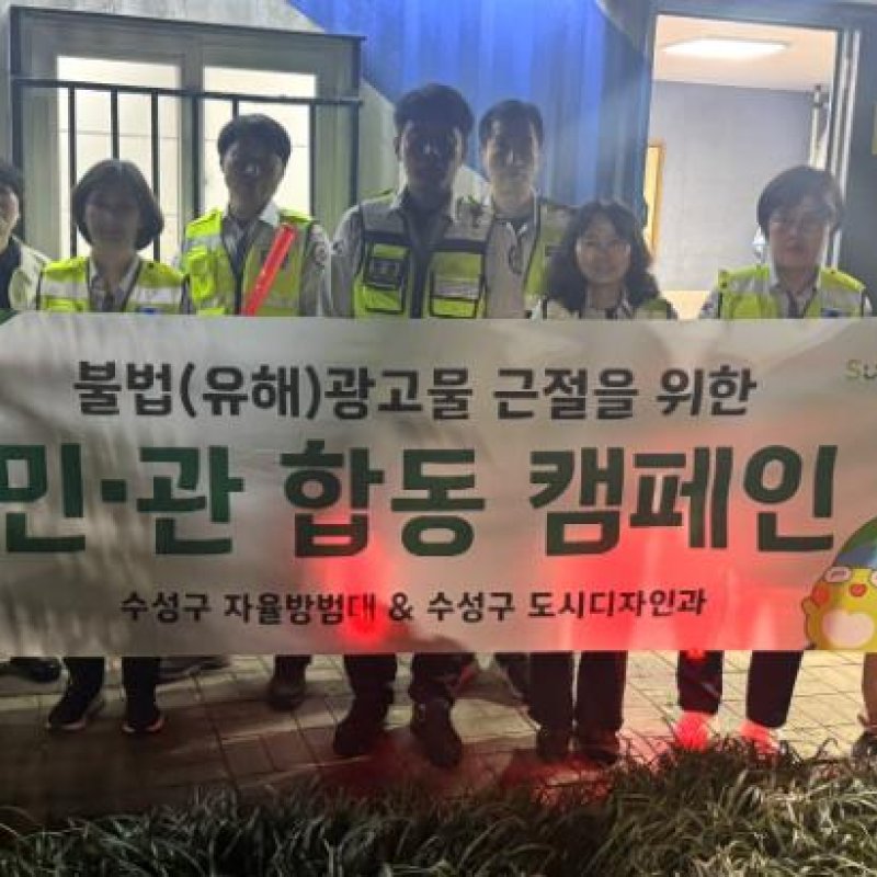 수성구·자율방범대, ‘민관합동 불법광고물 근절 캠페인’ 진행