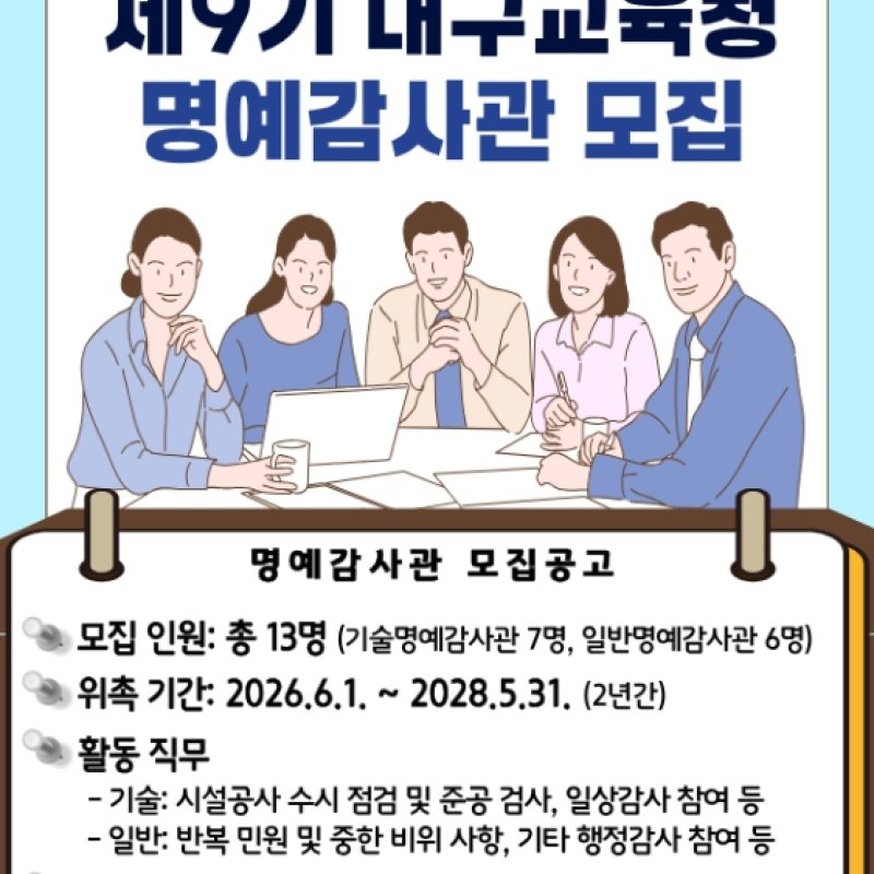 대구시교육청, ‘제9기 명예감사관’ 공개 모집