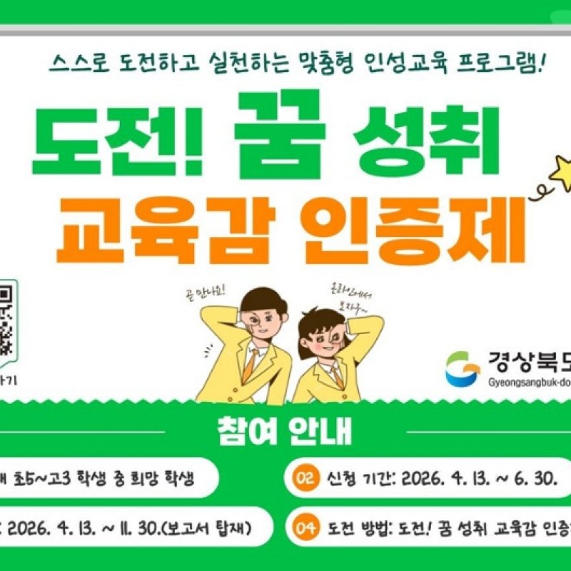 경북교육청, 도전 DNA 북돋운다!‘교육감 인증제 지원단’본격 가동