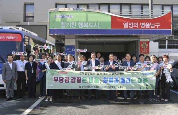 [고타야뉴스=이은희기자]대구 남구는 지난 9월 1일, 과장급 이상 간부공무원이 함께하는 ˝갑질 근절 다짐 캠페인˝을 실시했다.