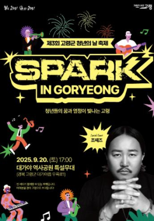 [고타야뉴스=이은희기자]고령군은 오는 9월 20일 오후 5시부터 8시까지, 대가야역사공원에서 청년의 날을 기념하는 특별행사‘SPARK(스파크) IN GORYEONG – 청년들의 꿈과 열정이 빛나는 고령’을 개최한다고 밝혔다.