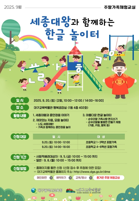 [고타야뉴스=이은희기자] 대구시교육청 산하 대구교육박물관은 제579돌 한글날을 기념하여 9월 20일, 어린이와 가족이 함께하는 특별한 가족 체험 프로그램을 운영한다.