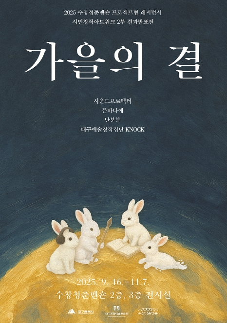 [고타야뉴스=이은희기자]대구문화예술진흥원 문화예술본부는 청년예술가와 시민이 함께 만든 창작의 결실인 시민창작아트워크 2부 ‘가을의 결’을 9월 16일부터 11월 7일까지 수창청춘맨숀에서 개최한다.