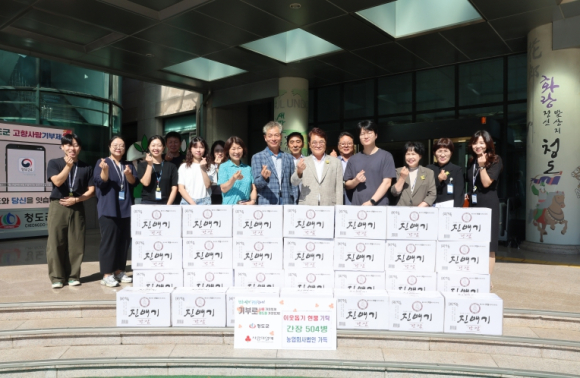 [고타야뉴스=이은희기자]청도군은 지난 5일 농업회사법인 가득(대표 이영남)으로부터 간장 504병(500만 원 상당)을 기탁받았다고 밝혔다. 이번 기탁은 지난 1월에 이어 올해 두 번째로 진행된 것으로, 기업이 지역사회와 함께하는 ‘상생의 가치’를 실천한 사례다.