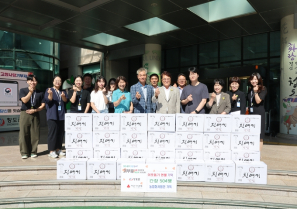 [고타야뉴스=이은희기자]청도군은 지난 5일 농업회사법인 가득(대표 이영남)으로부터 간장 502병(500만 원 상당)을 기탁받았다고 밝혔다.