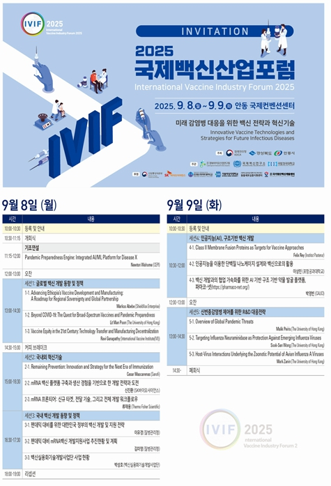 [고타야뉴스=이은희기자]경상북도는 8일부터 9일까지 안동국제컨벤션센터에서 ‘미래 감염병 대응을 위한 백신 전략과 혁신기술’을 주제로 ‘2025 국제백신산업포럼’을 개최하고 세계적 백신 허브로 도약하는 기반을 다졌다.