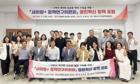 [고타야뉴스=이은희기자]구미시는 지난 5일 도개행복나눔센터에서 ‘새희망+ 정책연구위원회 열린혁신 정책 포럼’을 열고 시민 건강 증진과 지역 경제 활성화를 위한 ‘구미형 푸드플랜’ 실행방안을 논의했다.