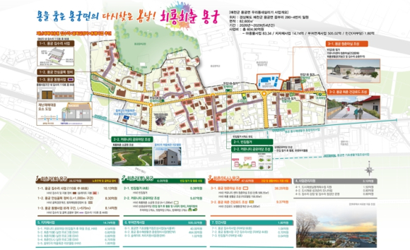 이번 공모에 선정된 포항시 남구 일월동에는 빈집 정비 및 집수리 동행 사업과 보행환경 개선사업, 건강센터를 조성하고, 예천군 용궁면은 집수리 및 안심골목 정비, 커뮤니티 공유마당 조성, 용궁 청춘 마실 등을 조성한다.