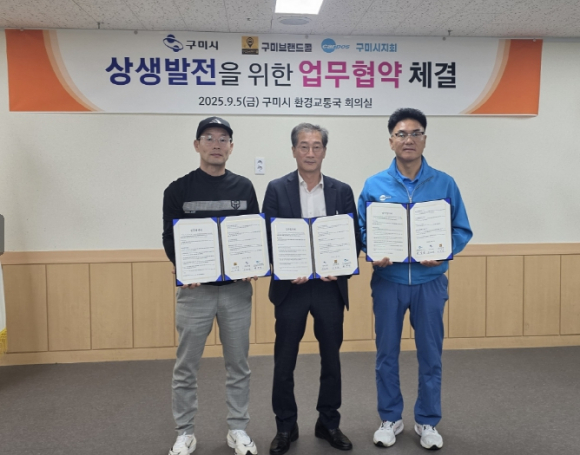 | ↑↑ 구미시-카포스 구미시지회-구미브랜드콜 상생발전을 위한 업무협약 |
