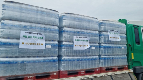 [고타야뉴스=이은희기자]대구 북구청은 9월 9일 심각한 가뭄으로 생활용수 부족과 제한급수에 직면한 자매도시 강릉시에 긴급 구호물품으로 2리터 생수 3,726병을 지원했다.