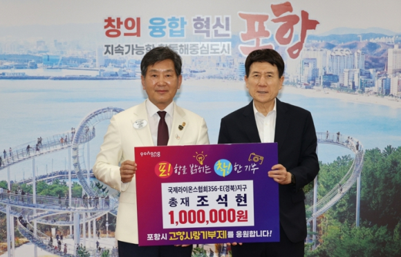 이강덕 포항시장은 “조석현 총재님의 ‘오로지 봉사’ 정신이 담긴 기부는 지역사회에 큰 귀감이 될 것”이라며 “기탁해 주신 성금은 주민 복리와 지역 발전을 위해 소중히 활용하겠다”고 전했다.