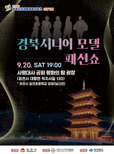 [고타야뉴스=이은희기자]김천시는 오는 9월 20일 저녁 7시, 직지사 사명대사공원 평화의 탑 일원에서 `경상북도 시니어모델 패션쇼`를 개최한다고 밝혔다.