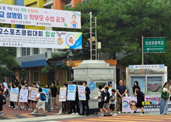 [고타야뉴스=이은희기자]경상북도교육청 의성교육지원청은 2025년 9월 15일(월) 오전, 의성초등학교 정문 앞에서 학생들의 안전한 통학 환경을 조성하고 범죄 예방에 대한 지역사회의 경각심을 제고하기 위한 등굣길 안심 캠페인을 실시했다.