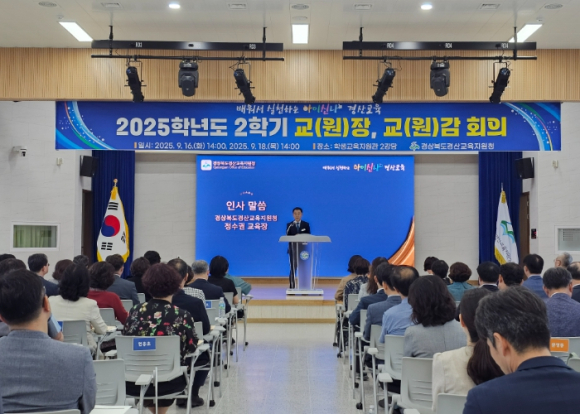 [고타야뉴스=이은희기자]경상북도경산교육지원청은 9월 16일과 9월 18일 14:00에 학생교육지원관 2강당에서 유, 초, 중, 고, 특수, 각종학교 교(원)장 및 교(원)감을 대상으로 2025학년도 2학기 회의를 개최했다.