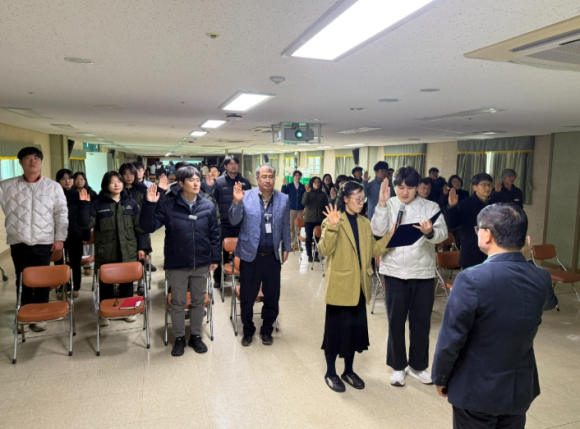 [고타야뉴스=이은희기자] 대구교육낙동강수련원은 1월 5일 중대산업재해 ‘ZERO’를 목표로 직원들이 안전과 건강을 최우선 가치로 인식하고, 안전보건 법규 및 안전보건 수칙을 준수하는 조직문화 조성을 위해 ‘안전보건수칙 준수 서약식’을 개최했다.