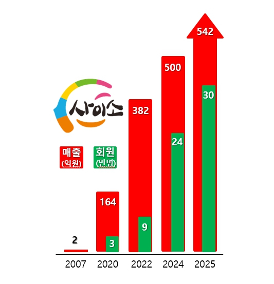 | ↑↑ 사이소 매출 및 회원 증감 그래프 |