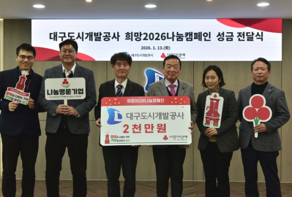 [고타야뉴스=이은희기자]대구도시개발공사는 1월 13일 사회복지공동모금회가 주관하는 ‘희망2026나눔캠페인’에 성금 2,000만 원을 기탁했다고 밝혔다.