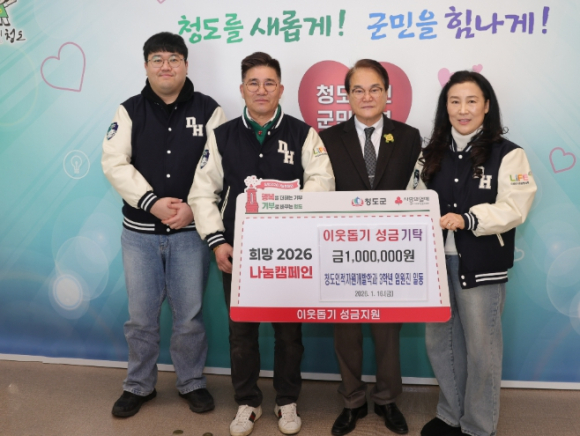 [고타야뉴스=이은희기자]대구한의대학교 청도인적자원개발학과 3학년 임원진들(과대표 조형석)은 지난 16일 희망2026 나눔캠페인 이웃돕기 성금 100만원을 청도군에 전달했다.