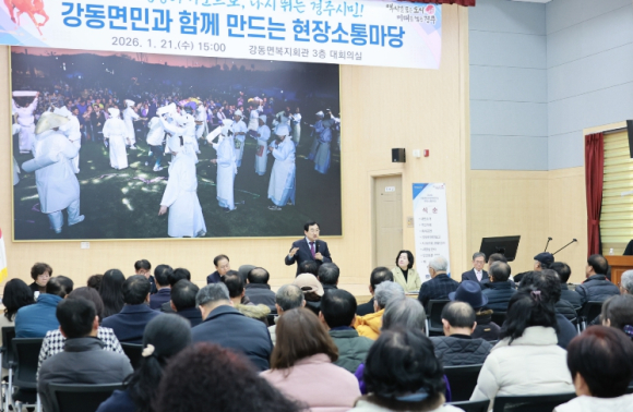 [고타야뉴스=이은희기자]경주시가 21일 지역 주민과 직접 소통하는 ‘2026년 시민과 함께 만드는 현장소통한마당’을 시작하고, 안강읍과 강동면을 차례로 찾아 새해 첫 읍면동 현장 행보에 나섰다.