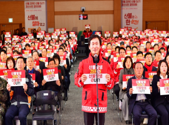 [고타야뉴스=이은희기자]경산시는 21일 경산시청 대회의실에서 『산불 ZERO·산불 OUT 결의대회』를 개최하고, 산불 예방과 신속한 현장 대응을 위한 공동 실천 의지를 다졌다.