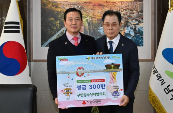 [고타야뉴스=이은희기자]대구 남구 구민상수상자협의회(회장: 조영원)는 지난 23일 남구를 찾아 어려운 이웃을 위해 써달라며 성금 300만원을 기탁했다. 이날 성금은 저소득 소외계층을 위해 사용될 예정이다.