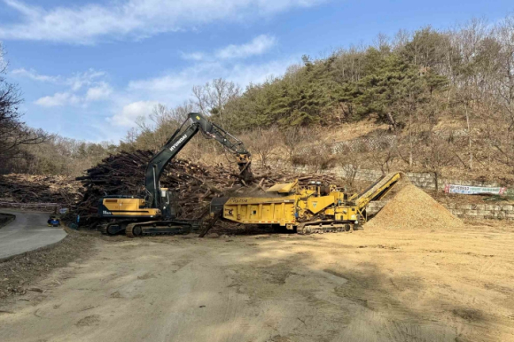 [고타야뉴스=이은희기자]의성군은 산불피해 산림에서 실시한 위험목 제거(벌채)사업으로 발생된 벌채산물에 대해 선별·파쇄 등 목재 처리 작업에 본격 착수하며 사업에 속도를 내고 있다고 밝혔다.