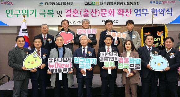 [고타야뉴스=이은희기자]대구 달서구는 25일 EXCO에서 대구경북금형공업협동조합(이사장 박만희)과 인구위기 극복 및 결혼·출산문화 확산을 위한 업무협약을 체결했다.