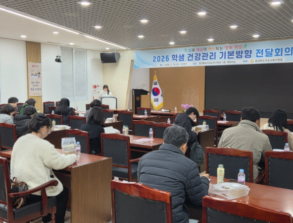 [고타야뉴스=이은희기자] 경상북도의성교육지원청은 2월 25일 3층 대회의실에서 초·중·고등학교 보건교사 및 보건담당교사 32명을 대상으로 2026학년도 학생 건강관리 기본방향 전달 회의를 개최했다.