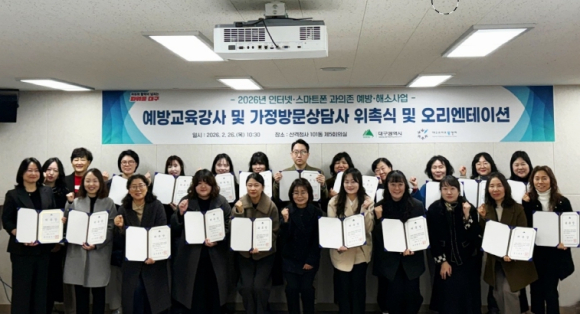 [고타야뉴스=이은희기자] 대구광역시는 2월 26일 시민들의 디지털 과의존을 예방하고 건전한 정보문화 확산을 이끌 ‘2026년 인터넷·스마트폰 과의존 예방교육강사 및 가정방문상담사 위촉식’을 개최했다.