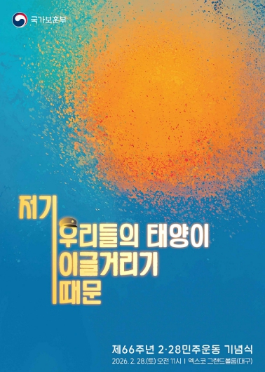 [고타야뉴스=이은희기자] 2026년 제66주년 2·28민주운동 국가기념식이 ‘저기, 우리들의 태양이 이글거리기 때문’이라는 주제로 2월 28일 오전 11시 엑스코(그랜드볼룸B)에서 개최된다.