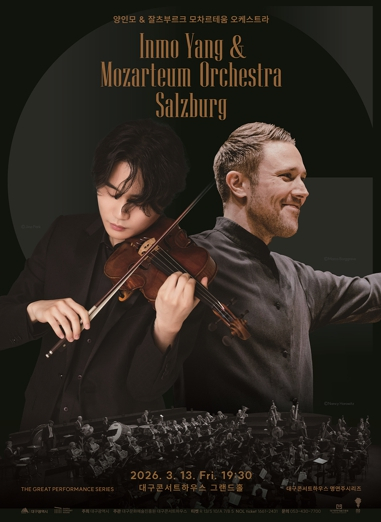 [고타야뉴스=이은희기자]세계 주요 오케스트라와 지휘자, 정상급 연주자들의 무대를 선보여온 대구콘서트하우스 명연주시리즈가 2026년의 시작을 알린다. 그 첫 무대인 `양인모&잘츠부르크 모차르테움 오케스트라`가 3월 13일 금요일 오후 7시 30분, 대구콘서트하우스 그랜드홀에서 개최된다.