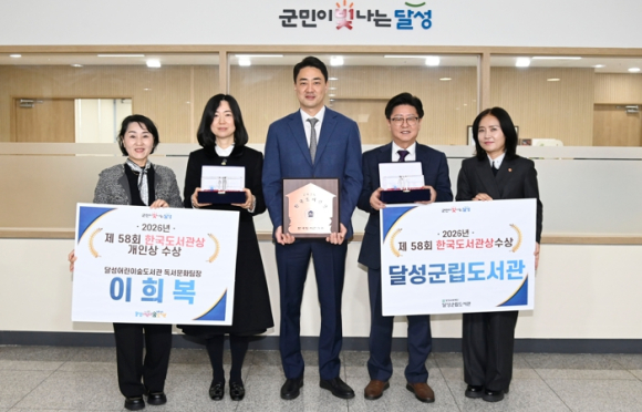 최재훈 달성군수는 “제58회 한국도서관상 단체상과 개인상 동시 수상은 달성군 도서관 정책의 방향성과 독서문화 진흥 전략이 전국적으로 인정받음과 동시에 지역 주민의 지지를 받은 결과”라며, “앞으로 달성군 도서관이 지역 기반 독서문화 확산의 새로운 이정표가 될 것으로 기대된다”고 밝혔다.