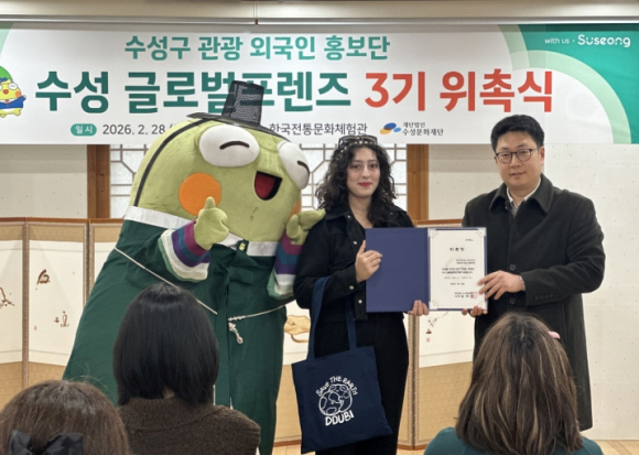 특히 올해는 수성구 대표 캐릭터 ‘뚜비’ 서포터즈단 ‘하뚜’ 활동을 연계해, 글로벌프렌즈 11명이 뚜비 온라인 홍보 활동을 병행한다. 이들은 올 한 해 뚜비와 함께 수성구 투어, 공연, 축제, 관광지 등을 취재해 글로벌 문화관광도시 수성구를 알릴 예정이다.