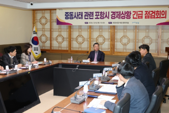 [고타야뉴스=손창범기자] 포항시는 5일 ‘중동 사태에 따른 긴급 경제 상황 점검회의’를 열고, 최근 급변하는 국제 정세가 지역 핵심 산업과 민생경제에 미칠 타격을 최소화하기 위한 비상 대책 마련에 나섰다.