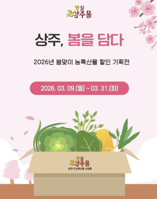 이번 기획전은 2026년 3월 9일부터 3월 31일까지 진행되며, 상주시 공식 온라인몰인 명실상주몰을 통해 나물류, 버섯류 등 봄철 농특산물 먹거리를 20% 할인된 가격으로 판매한다.