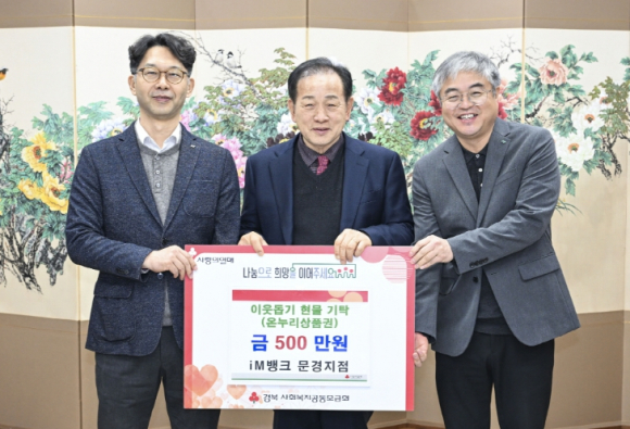 신현국 문경시장은 “어려운 이웃을 위해 따뜻한 나눔을 실천해 준 iM뱅크 문경지점에 감사드린다”며 “기탁된 온누리상품권은 도움이 필요한 가구에 소중히 전달하겠다”고 밝혔다.