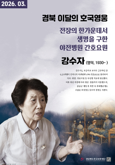 한희원 경상북도호국보훈재단 대표이사는 “강수자 선생은 전장의 한가운데에서 부상 장병들의 생명을 지키며 나라를 수호한 영웅”이라며, “이번 선정을 통해 도민들이 전쟁의 아픔 속에서도 생명을 지키기 위해 헌신한 분들의 숭고한 정신을 되새기는 계기가 되길 바란다”고 말했다.