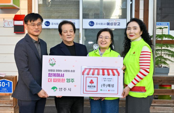 ‘착한가게’는 매월 3만 원 이상 또는 매출의 일정액을 정기적으로 기부해 어려운 이웃을 돕는 나눔 실천 사업으로, ㈜예성은 영주시 106호(경상북도 4909호) 착한가게로 이름을 올렸다.
