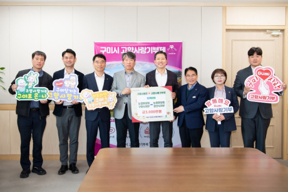 [고타야뉴스=이은희기자]구미시는 4월 2일 농협중앙회 구미시지부(지부장 이승철)와 경산시지부(지부장 이재근)가 지역 상생 발전을 위한 고향사랑기부금 3,000만원을 상호기부했다고 밝혔다.