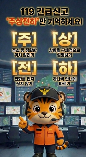 박정원 대구소방안전본부 119종합상황실장은 “119 신고의 시작은 정확한 위치 설명이며, 완성은 상황실 요원의 안내 이행이다.`주상전하`네 글자만 기억해도 소중한 생명을 구하는 골든타임을 확실히 지킬 수 있다.”라고 말했다.