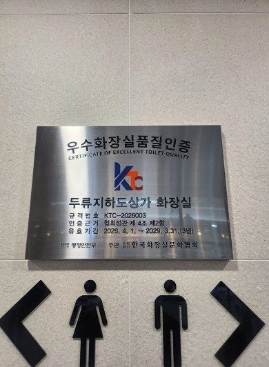 | ↑↑ 두류지하도상가, 우수 화장실 품질 인증 획득 |
