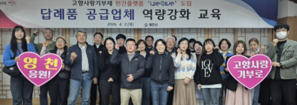 [고타야뉴스=이은희기자] 영천시는 2일 사회적기업 ㈜공감만세(대표 고두환)가 운영하는 고향사랑기부제 민간 플랫폼 ‘위기브(wegive)’와 고향사랑기부금 모금 계약을 체결하고, 답례품 공급업체를 대상으로 역량 강화 교육을 실시했다.