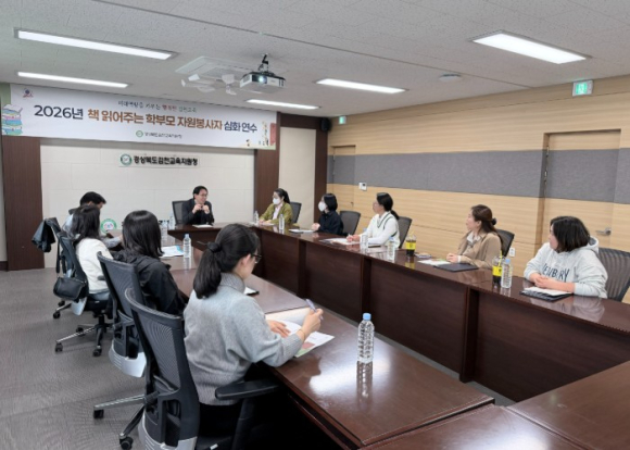 [고타야뉴스=이은희기자]경상북도김천교육지원청은 4월 3일 김천교육지원청 회의실에서 관내 책 읽어주는 학부모 자원봉사자를 대상으로 `2026년 책 읽어주는 학부모 자원봉사자 심화 연수`를 실시했다.