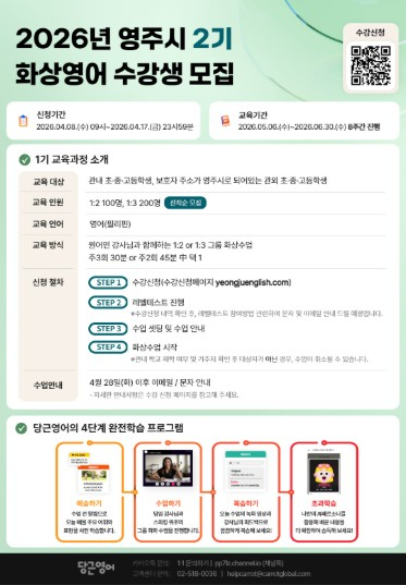 [고타야뉴스=이은희기자]영주시는 4월 8일부터 17일까지 ‘2026년 원어민 사이버 화상영어’ 제2기 수강생을 선착순으로 모집한다.
