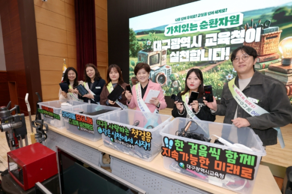 [고타야뉴스=이은희기자] 대구시교육청은 4월 10일 오전 10시, 시교육청 행복관에서 최근 중동 지역 분쟁 등 글로벌 지정학적 위기로 고조되는‘자원 안보’의 중요성에 대응하고, 일상 속 탄소중립을 실천하기 위한‘순환자원 캠페인-ESG 나눔 모두비움 실천대회’를 개최했다.