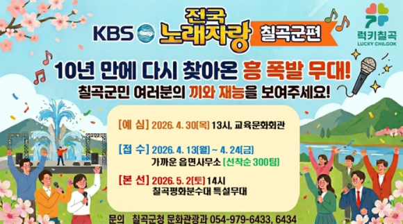 | ↑↑ KBS 전국노래자랑‘칠곡군편’ 5월 2일 개최 |