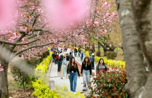 겹벚꽃 특유의 풍성한 꽃잎 덕분에 ‘인생샷 명소’로 입소문을 타고 있다.