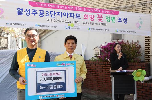 이태훈 달서구청장은 “지역사회를 위해 따뜻한 나눔을 실천해 주신 풍국주정공업에 깊이 감사드린다”며 “전달해 주신 후원금은 복지 사각지대를 해소하고 사회안전망을 강화하는 데 소중히 사용하겠다”고 밝혔다. 이어 “희망 꽃 정원 조성 활동에도 함께해 주셔서 감사드린다”고 덧붙였다.