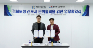 (재)한국정신문화재단과 (재)예천문화관광재단이 안동과 예천을 잇는 광역 연계 생활권 기반 문화협력의 물꼬를 텄다. 양 기관은 지난 15일(수) 예천군문화회관에서 ‘경북도청 신도시 문화협력을 위한 업무협약(MOU)’을 체결하고, 공동 문화사업 추진을 위한 상호 협력 체계를 구축했다고 밝혔다.