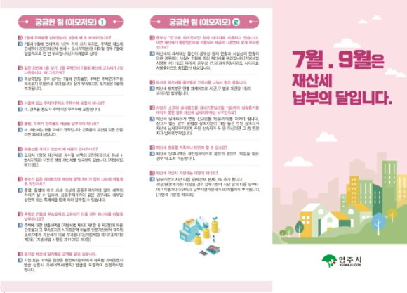 [고타야뉴스=이은희기자] 영주시는 2026년 7월 정기분 재산세 부과를 앞두고 시민들의 세금 납부 이해도를 높이고 편의를 제공하기 위해 재산세 안내 리플릿을 제작·배부한다.